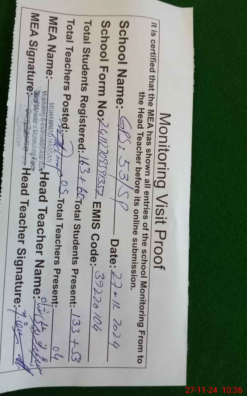 | EMIS Code: 39220104 | Name of School: GPS 53 SP | |||