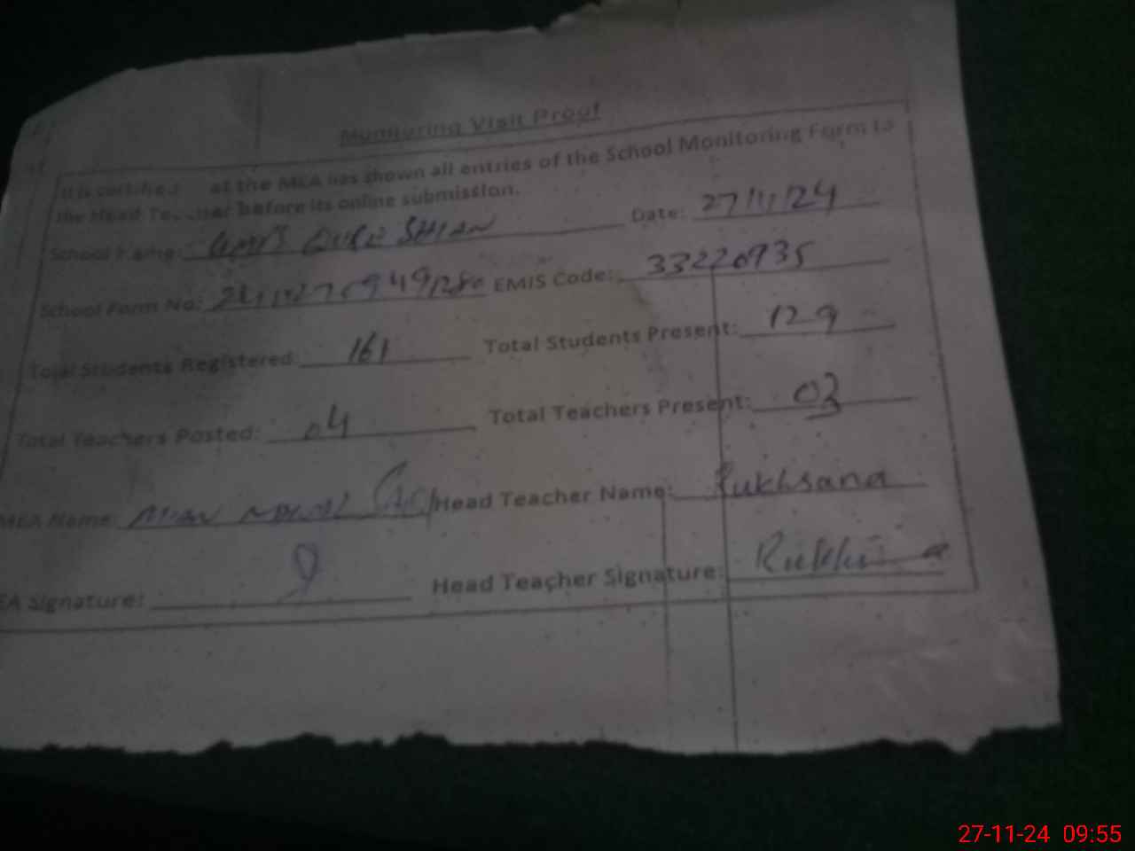 | EMIS Code: 33220935 | Name of School: GMPS QURESHIAN | |||