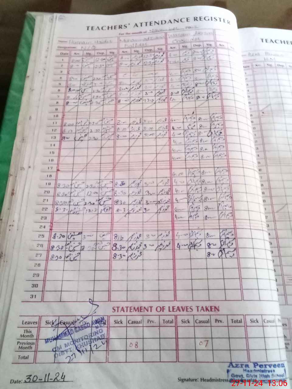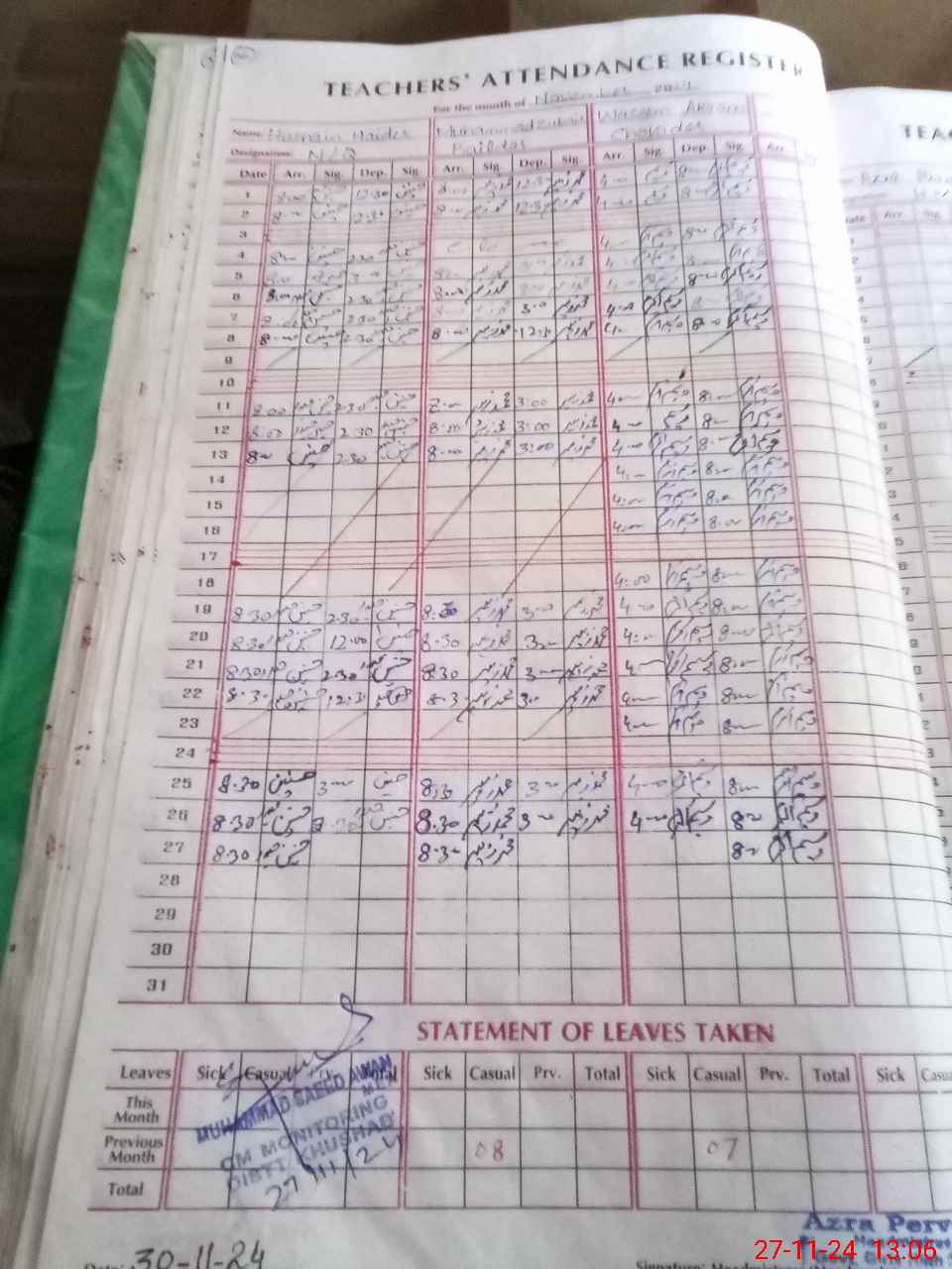 | Name: Az**** Pa**** Designation: (School Headmaster's/Headmistress's) Head Mistress Phone/Cell Number: 03**** |