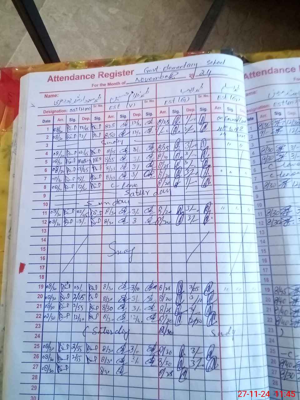 | CNIC | Full Name | Designation | R/C | Absence During Last Calender Month |