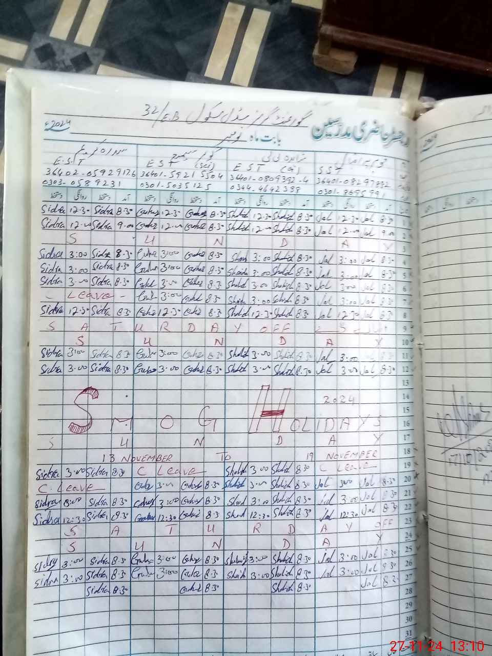 | Leave | Duty | Absent | Maternity | Medical | Ex- Pak |