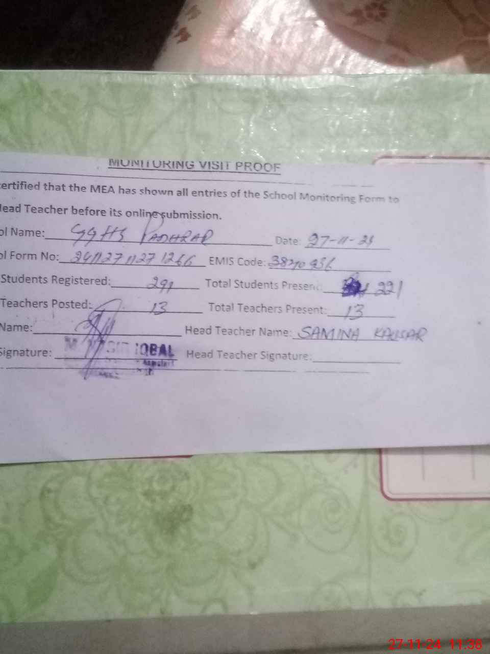 | EMIS Code: 38210936 | Name of School: GGHS PADHRAR | |||