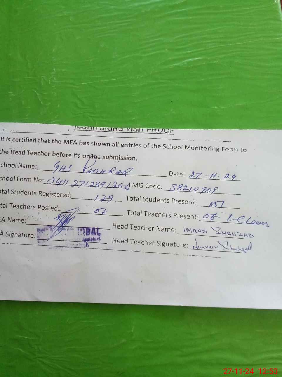 | EMIS Code: 38210909 | Name of School: GHS PADHARAR | |||