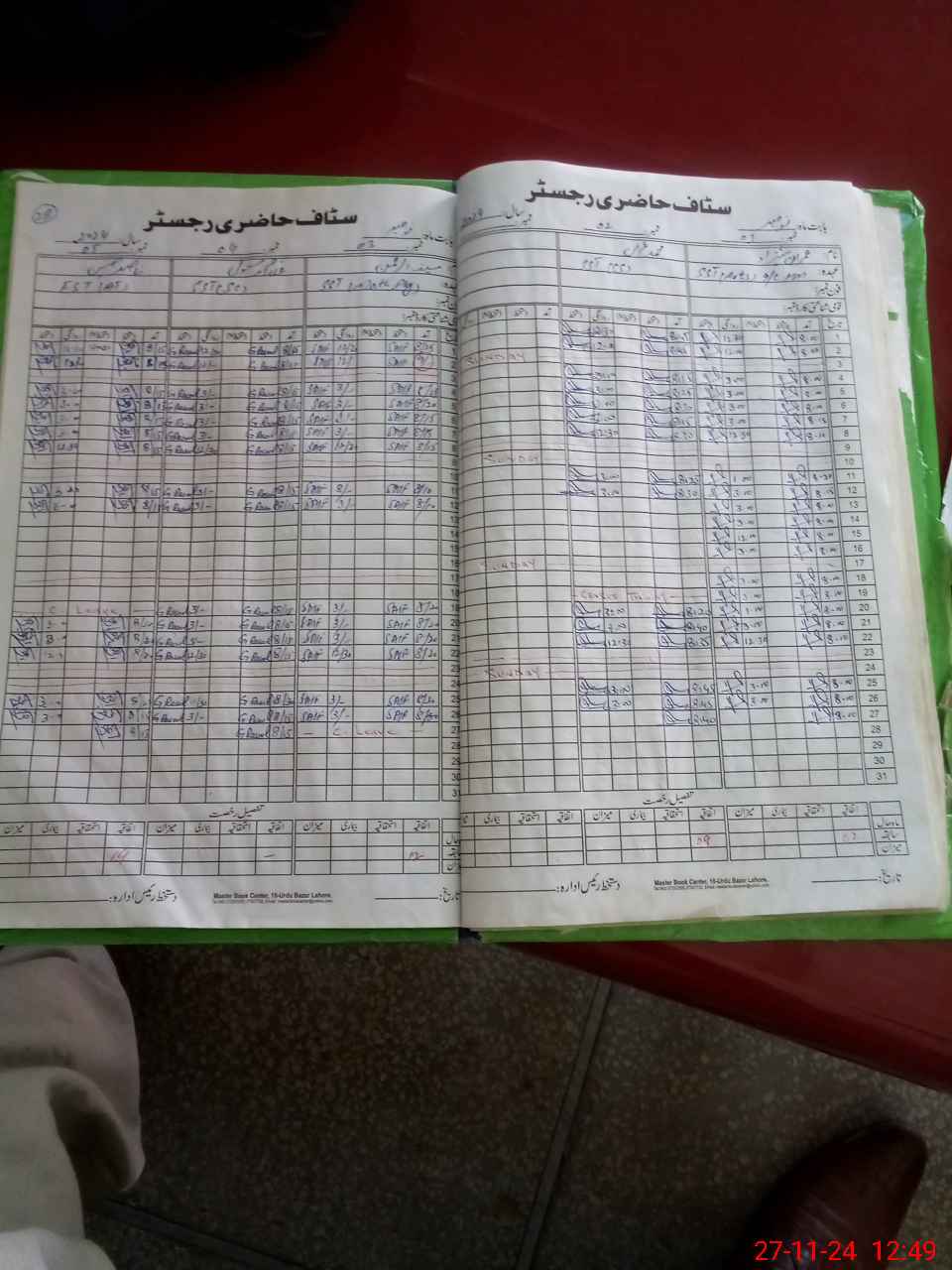 | CNIC | Full Name | Designation | R/C | Absence During Last Calender Month |