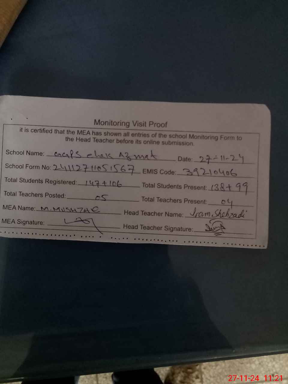 | EMIS Code: 39210406 | Name of School: GGPS CHAK AZMAT | |||