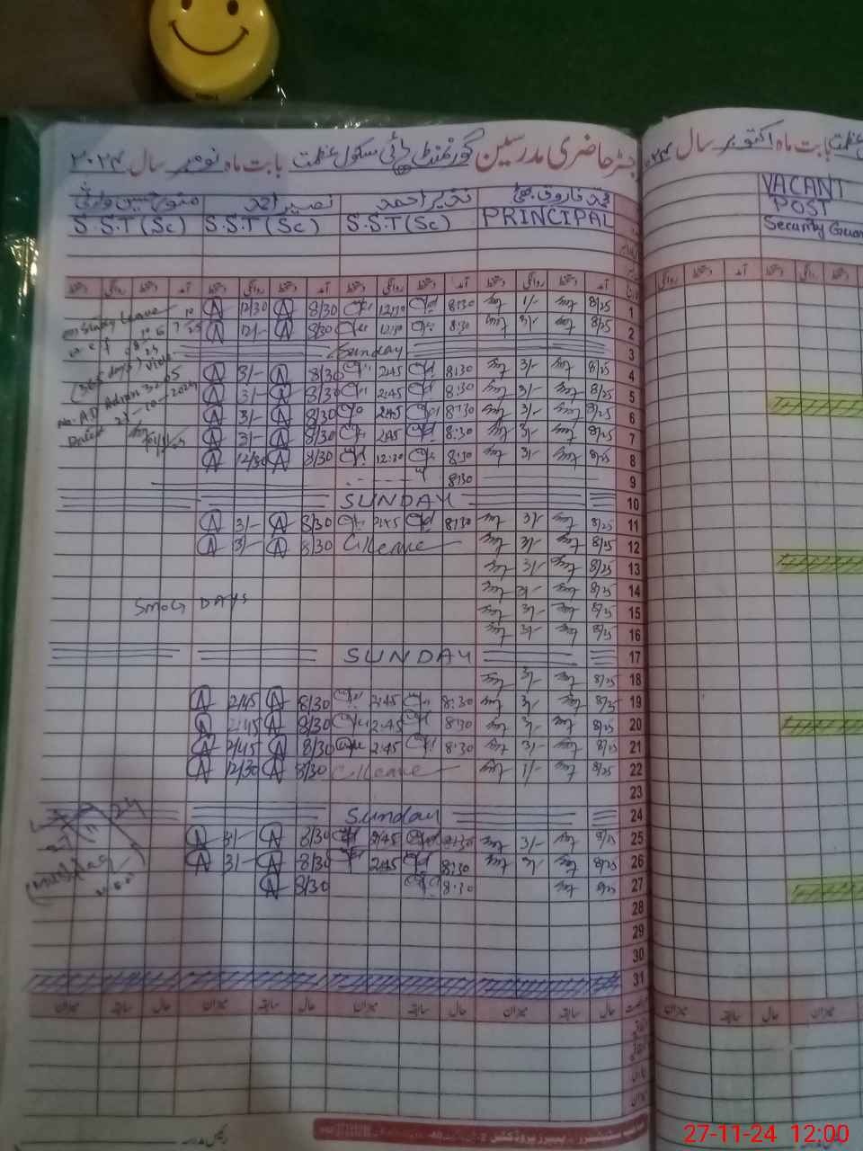 | CNIC | Full Name | Designation | R/C | Absence During Last Calender Month |
