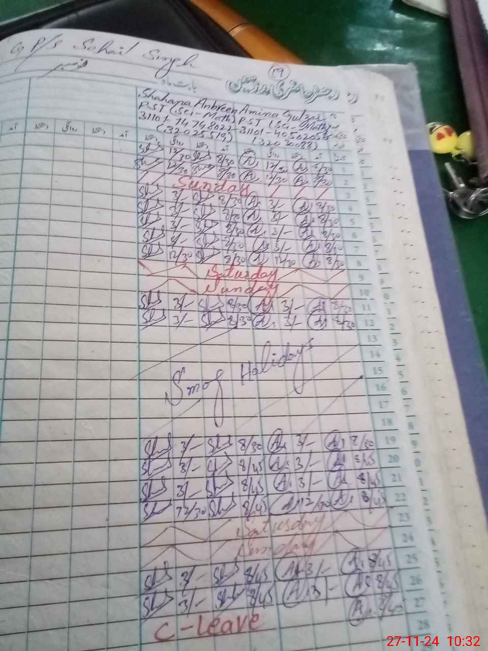| Leave | Duty | Absent | Maternity | Medical | Ex- Pak |
