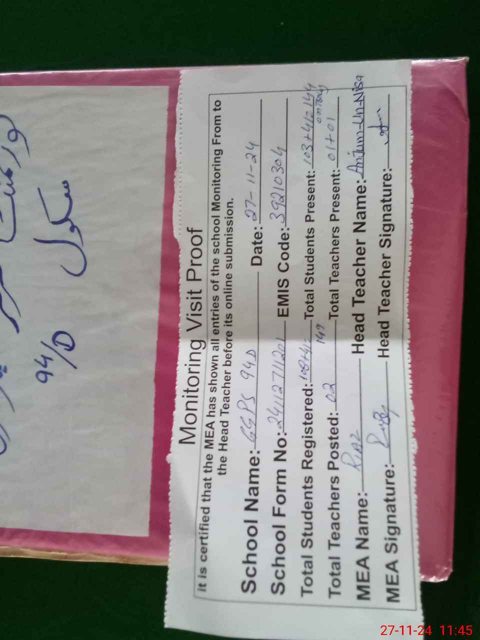 | EMIS Code: 39210304 | Name of School: GGPS 94 D | |||