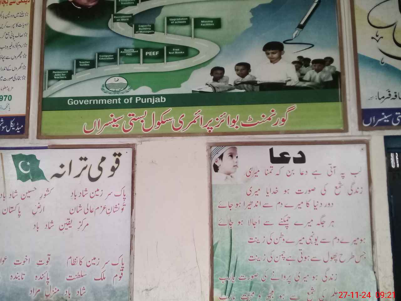 | Total no. of Classrooms: 1 No. of Classrooms Used for Teaching: 1 No. of Classrooms Storing Old Furniture, FTBs, etc: 0Comments if Any: Approved leave of teacher M Shahbaz PST not Available |