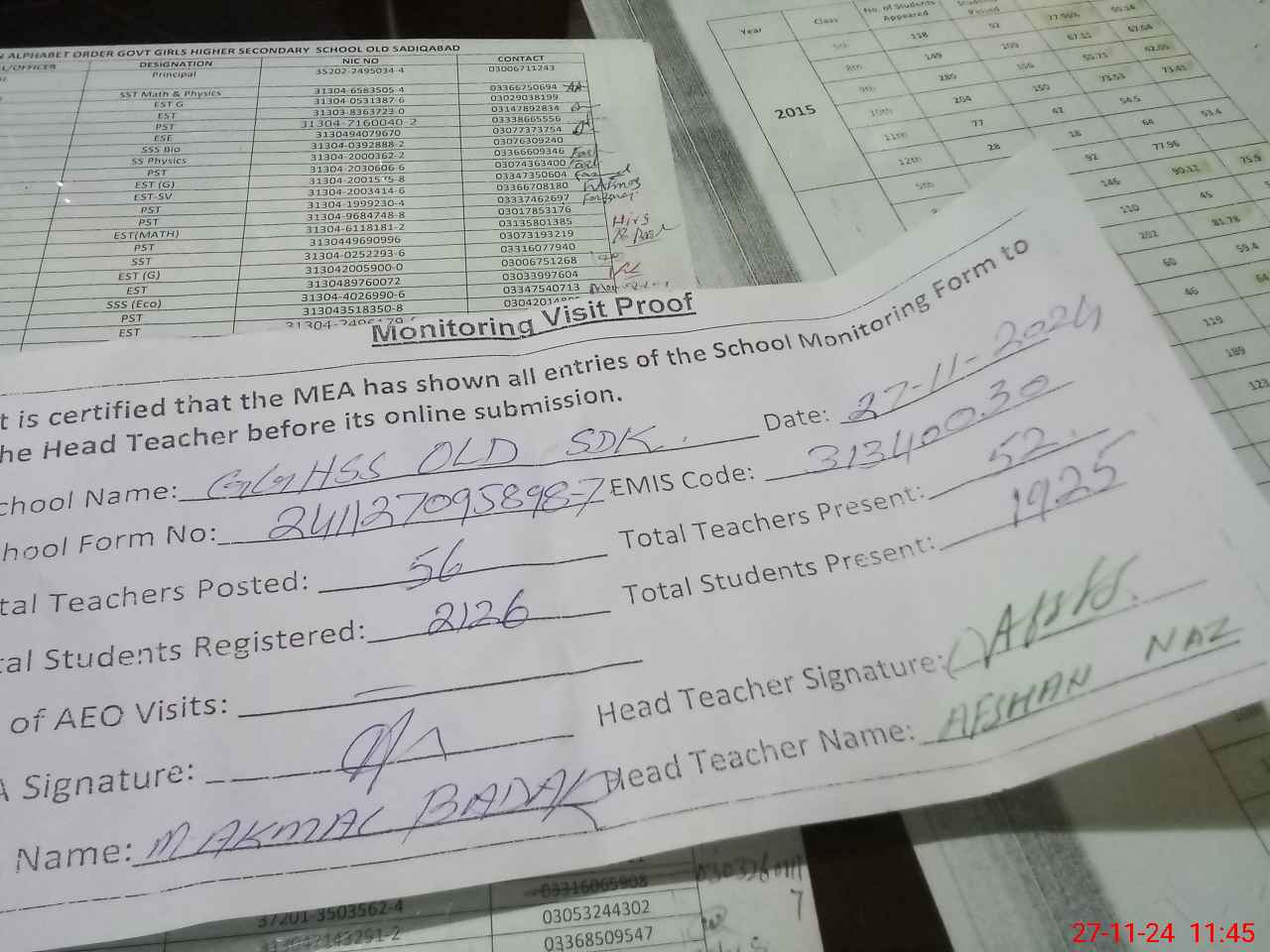 | Certified that this School was Inspected by the Undersigned MEA/DMO Today and the Information Stated Above is as Per Record. | |||||