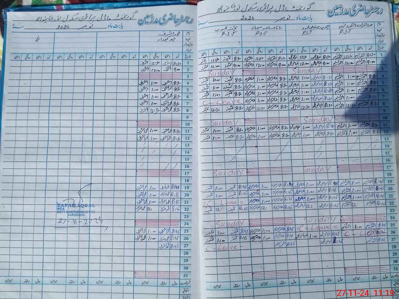 | CNIC | Full Name | Designation | R/C | Absence During Last Calender Month |