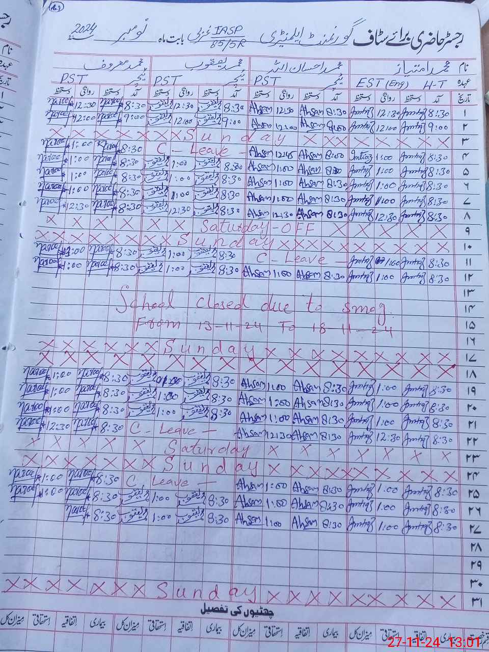 | CNIC | Full Name | Designation | R/C | Absence During Last Calender Month |