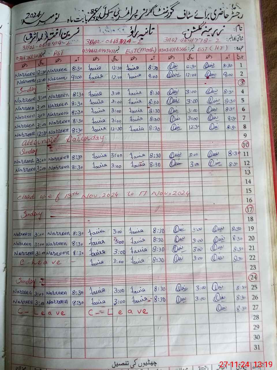 | 31**** | Na**** Ak**** | 1 | 0 | 0 | 0 | 0 | 0 | 0 | 0 | 0 | 0 | Casual | |