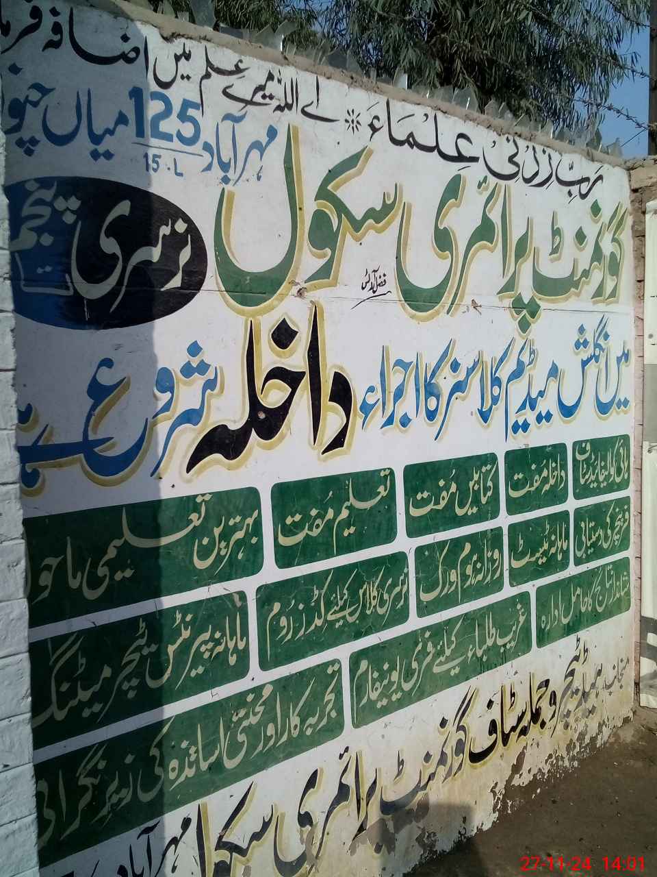 | EMIS Code: 36430423 | Name of School: GPS 125/15-L MEHAR ABAD, MIAN CHANNU | |||