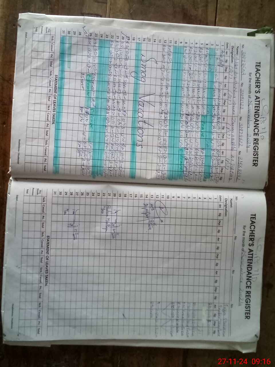 | Leave | Duty | Absent | Maternity | Medical | Ex- Pak |