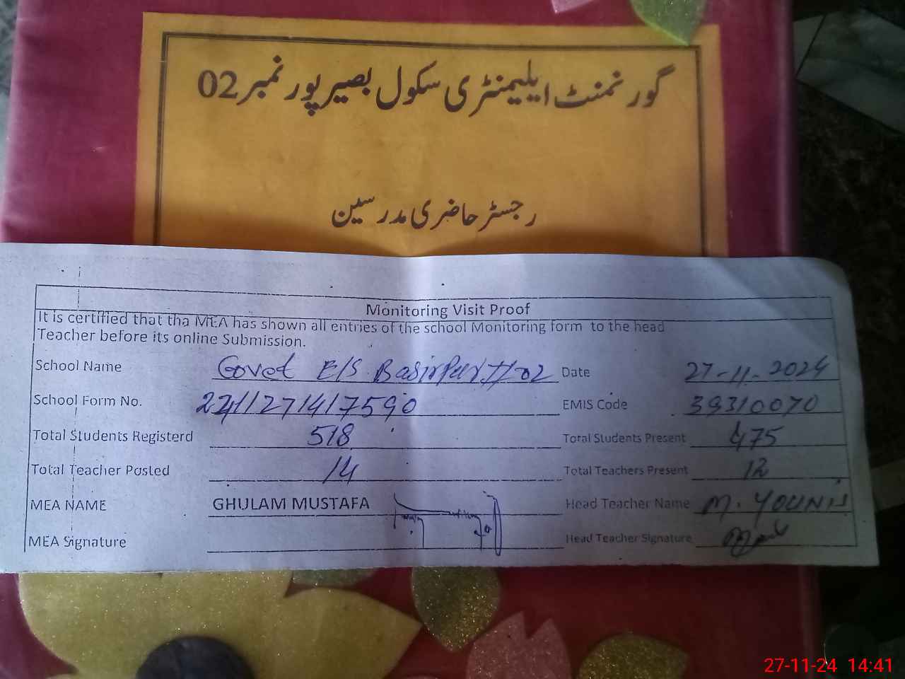 | EMIS Code: 39310070 | Name of School: GES BASIR PUR NO. 2 | |||
