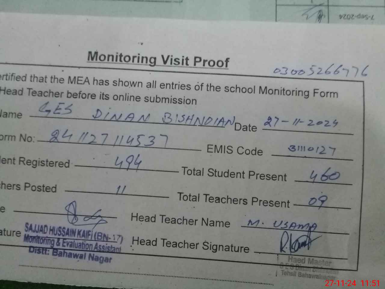| EMIS Code: 31110127 | Name of School: GES DINAN BISHNOIAN | |||