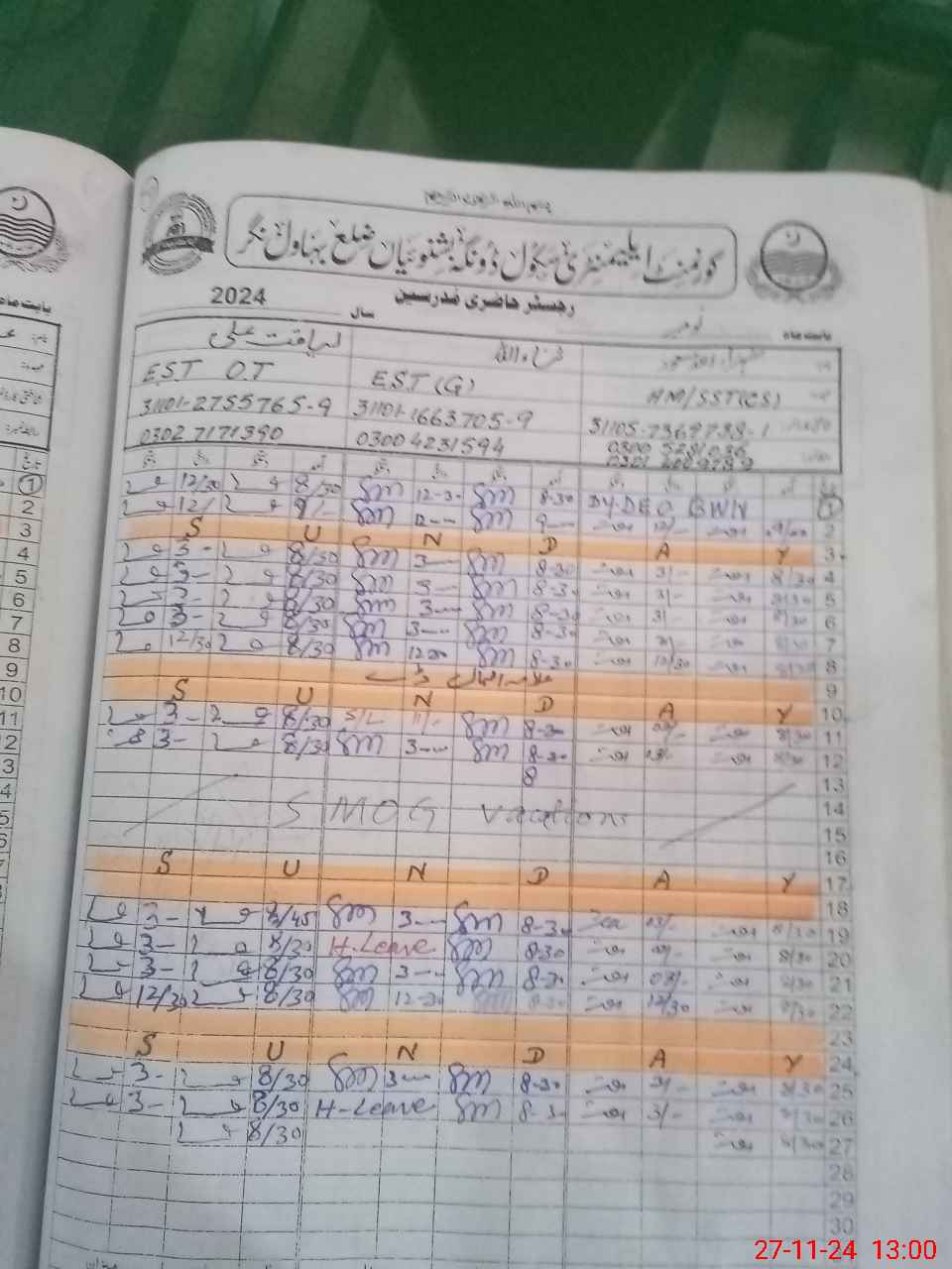 | Name: AbRa**** Designation: (School Headmaster's/Headmistress's) EST HT Phone/Cell Number: 03**** |