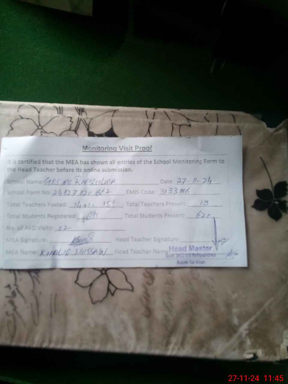 | EMIS Code: 31331116 | Name of School: GES MC RAFIQ-UL-ULMA | |||