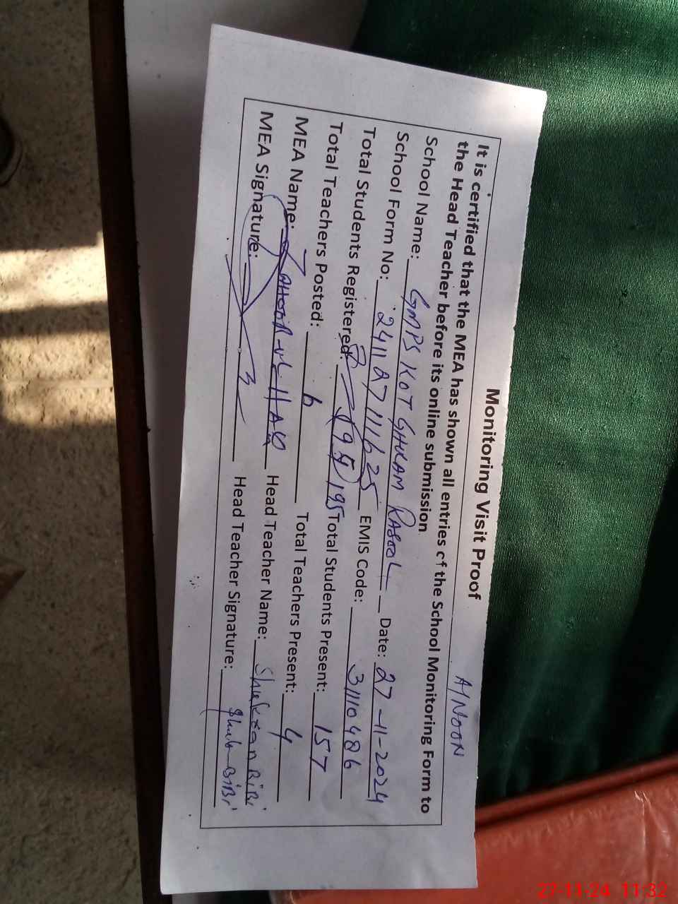 | EMIS Code: 31110486 | Name of School: GMPS KOT GHULAM RASOOL | |||