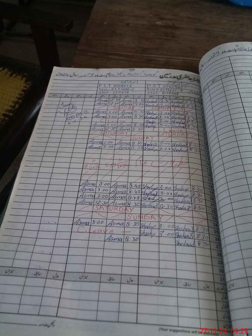 | CNIC | Full Name | Designation | R/C | Absence During Last Calender Month |