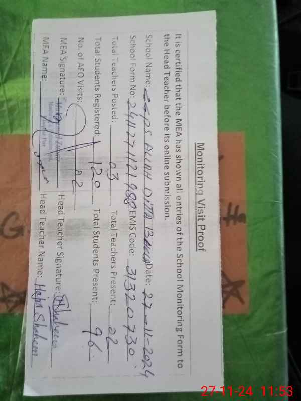 | EMIS Code: 31320730 | Name of School: GGPS ALLAH DITTA BEHLA | |||