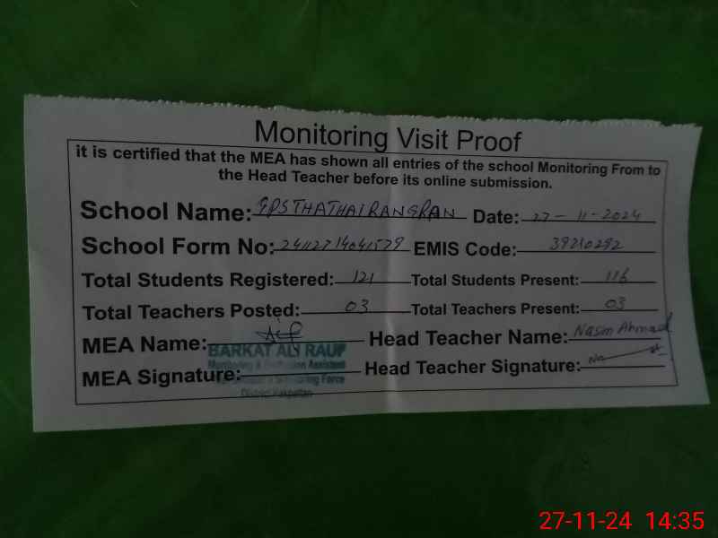 | EMIS Code: 39210292 | Name of School: GPS THATHAI RANGRAN P/O CHAK BEDI PAPATTAN | |||