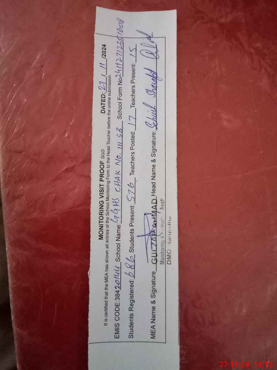 | EMIS Code: 38420144 | Name of School: GGHS CHAK NO.111 SB | |||