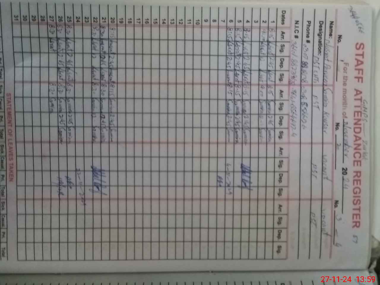 | Name: NU**** PA**** Designation: (School Headmaster's/Headmistress's) PST Phone/Cell Number: 03**** |