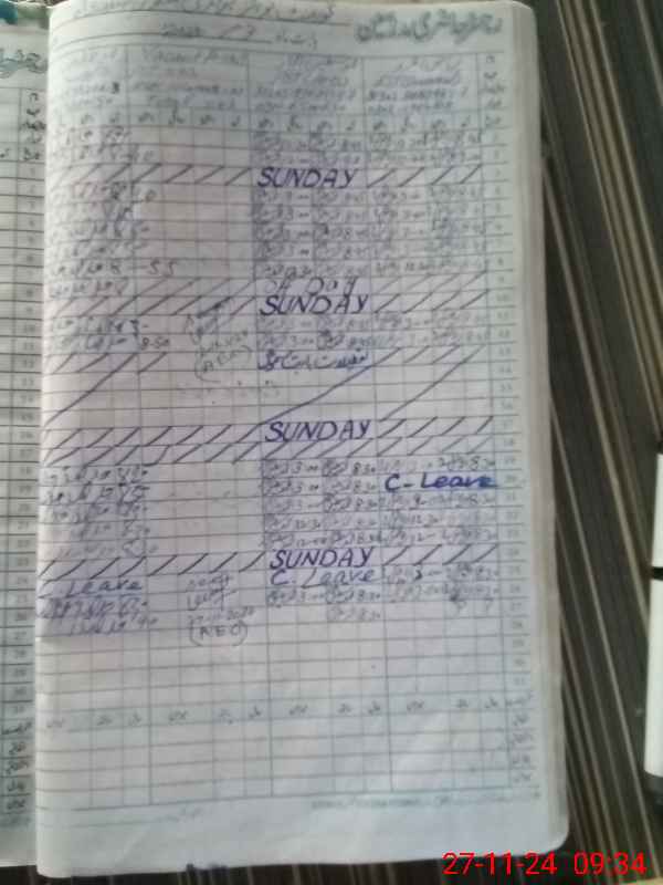 | CNIC | Full Name | Designation | R/C | Absence During Last Calender Month |