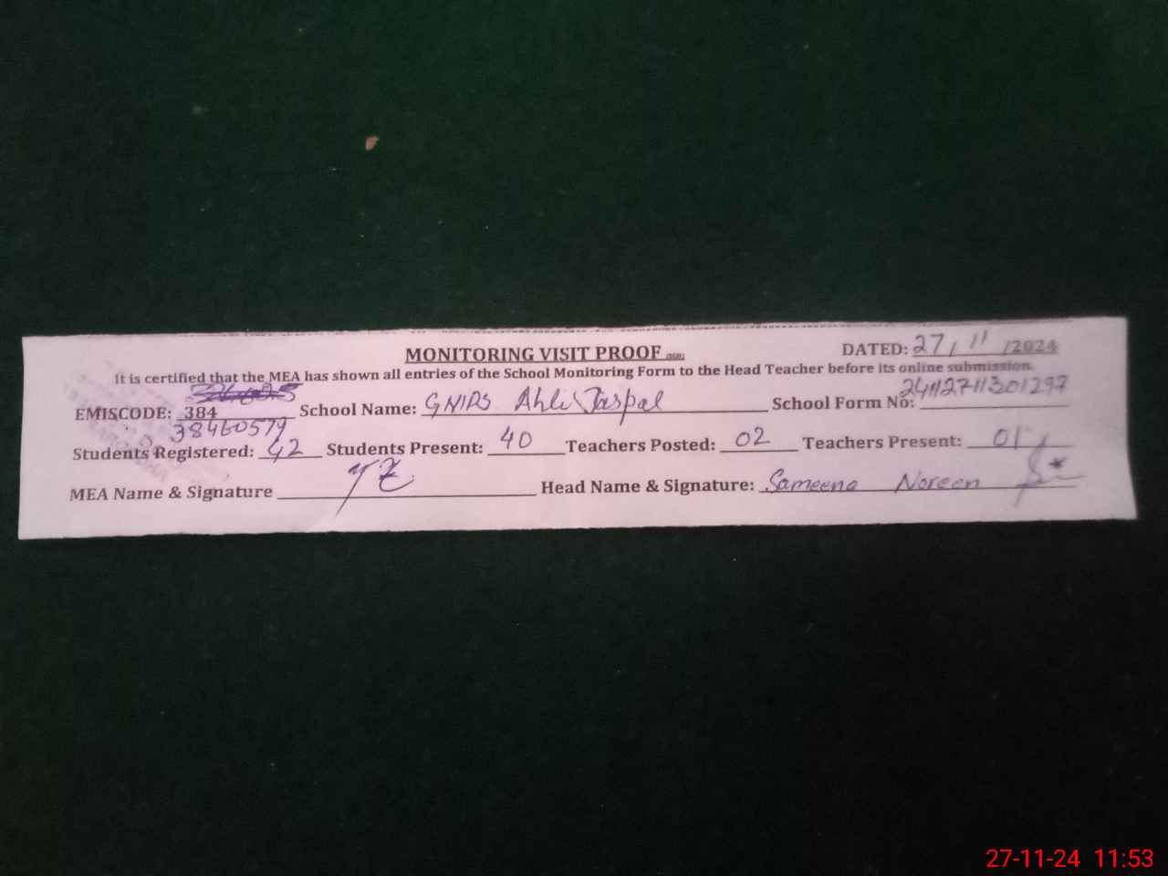 | EMIS Code: 38460579 | Name of School: GMPS AHLI JASPAL | |||