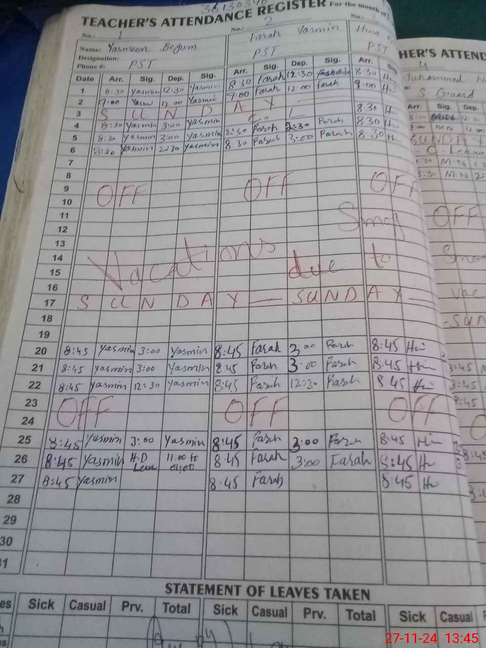 | Leave | Duty | Absent | Maternity | Medical | Ex- Pak |
