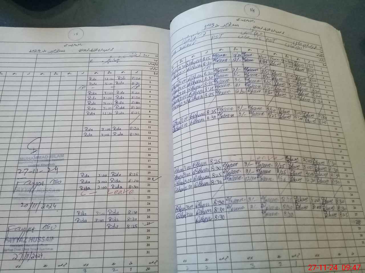 | CNIC | Full Name | Designation | R/C | Absence During Last Calender Month |