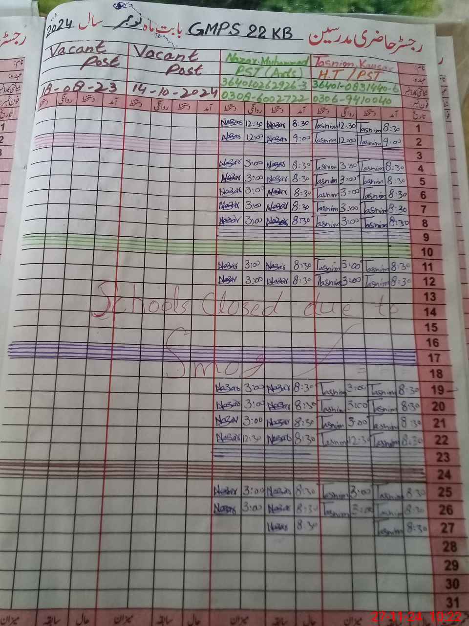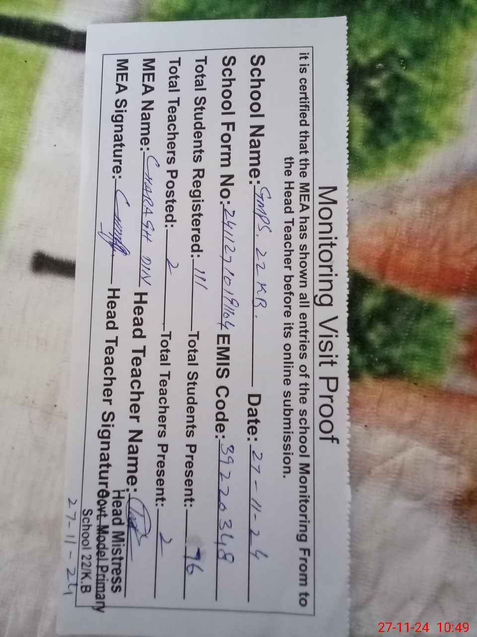 | EMIS Code: 39220348 | Name of School: GMPS 22 KB P/O MACHI SINGHTEH | |||