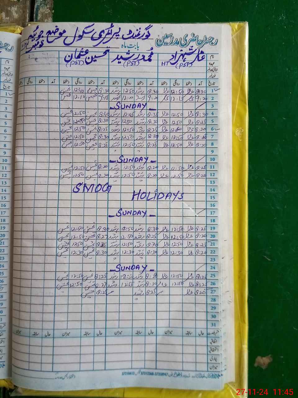 | Name: AA**** SH**** Designation: (School Headmaster's/Headmistress's) PST Phone/Cell Number: 03**** |