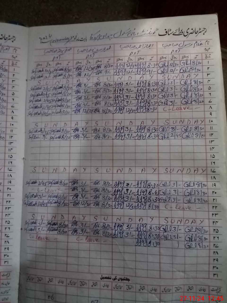 | 36**** | Sa**** Ul**** | PST | Regular | 2 | 0 | 0 | 0 | 0 | 0 | 0 | 0 | 2 | Casual |