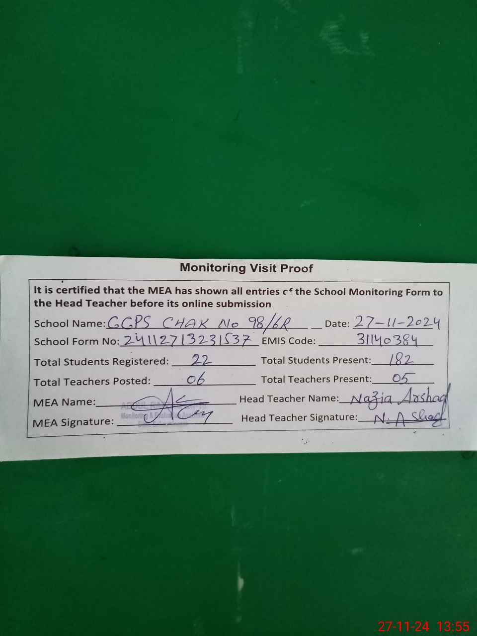 | EMIS Code: 31140384 | Name of School: GGPS CHAK 98/6-R | |||