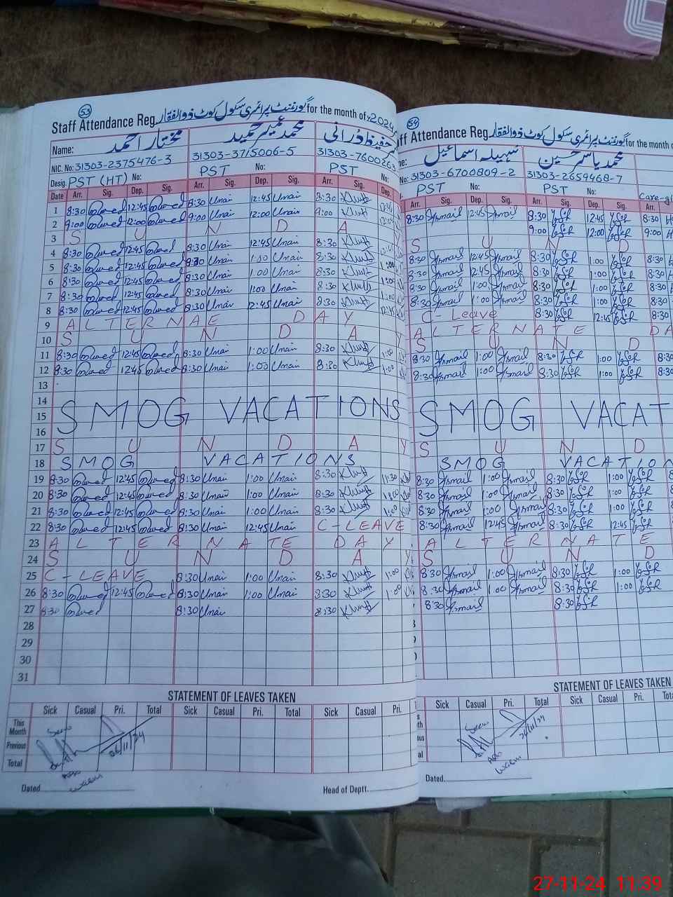 | Remarks (Use Separate Page if Required): Class verification is not updated on mea tab as per sis and school has insaf afternoon classes with students strength 67 and teachers attendance updated on sis on 27 11 2024 | |||||
