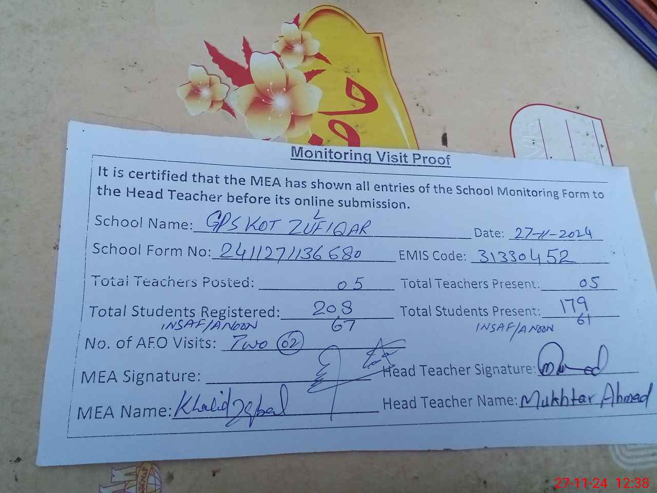 | EMIS Code: 31330452 | Name of School: GPS KOT ZULFIQAR | |||