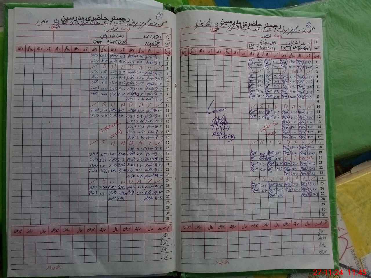 | CNIC | Full Name | Designation | R/C | Absence During Last Calender Month |