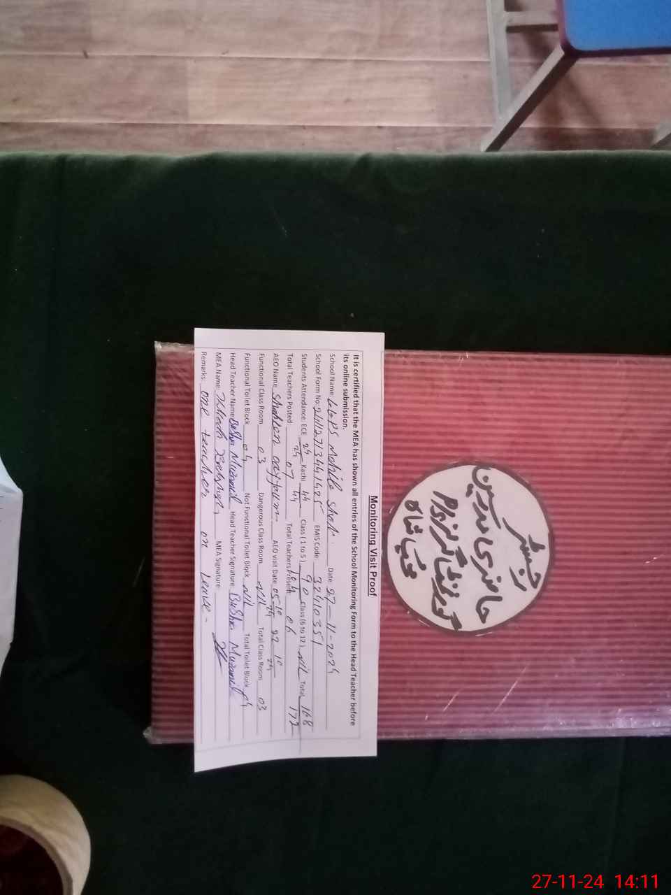 | Attendance Register | Head Teacher | MEA with School | Visit Proof |