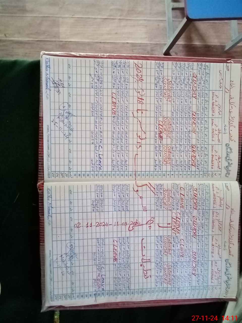| CNIC | Full Name | Designation | R/C | Absence During Last Calender Month |