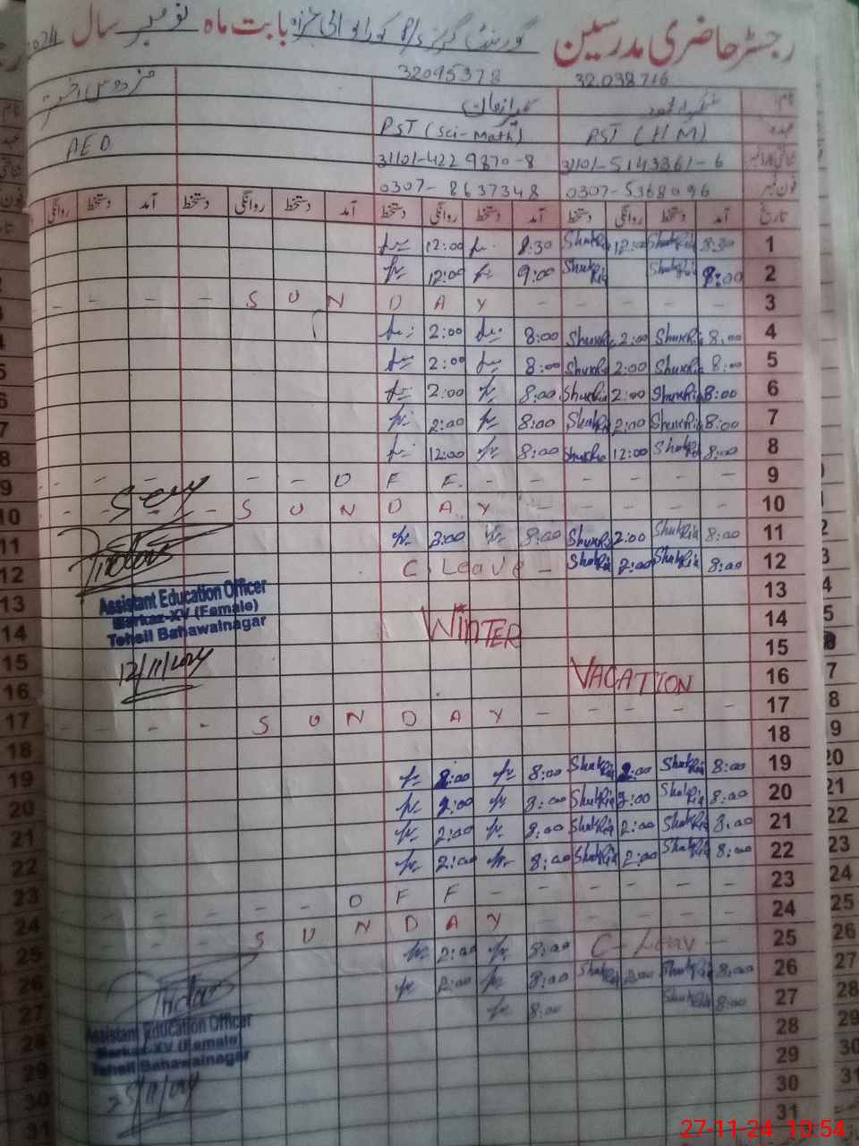 | Name: Sh**** ME**** Designation: (School Headmaster's/Headmistress's) PST Phone/Cell Number: 03**** |