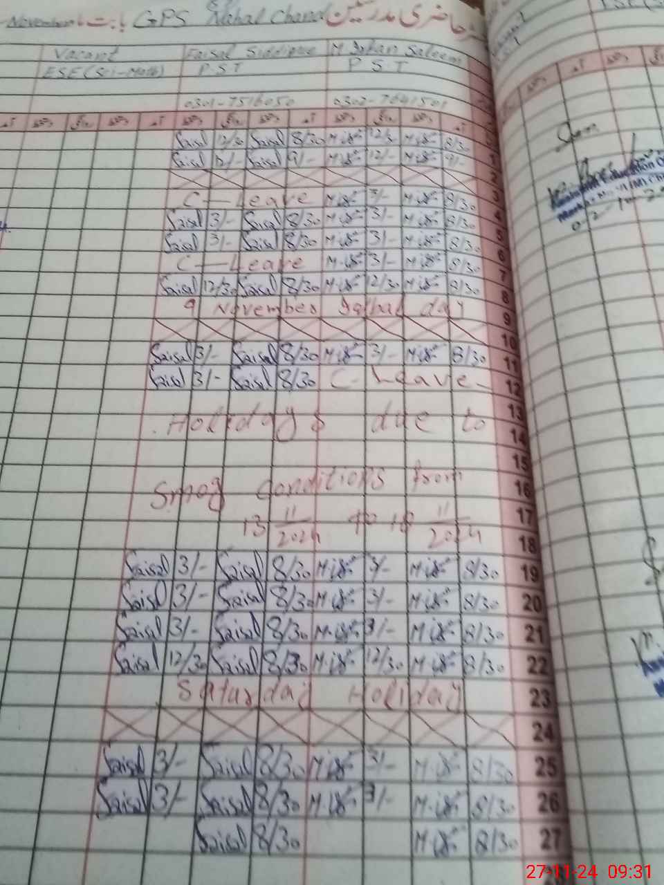 | Name: Mu**** Ir**** Sa**** Designation: (School Headmaster's/Headmistress's) PST Phone/Cell Number: 03**** |