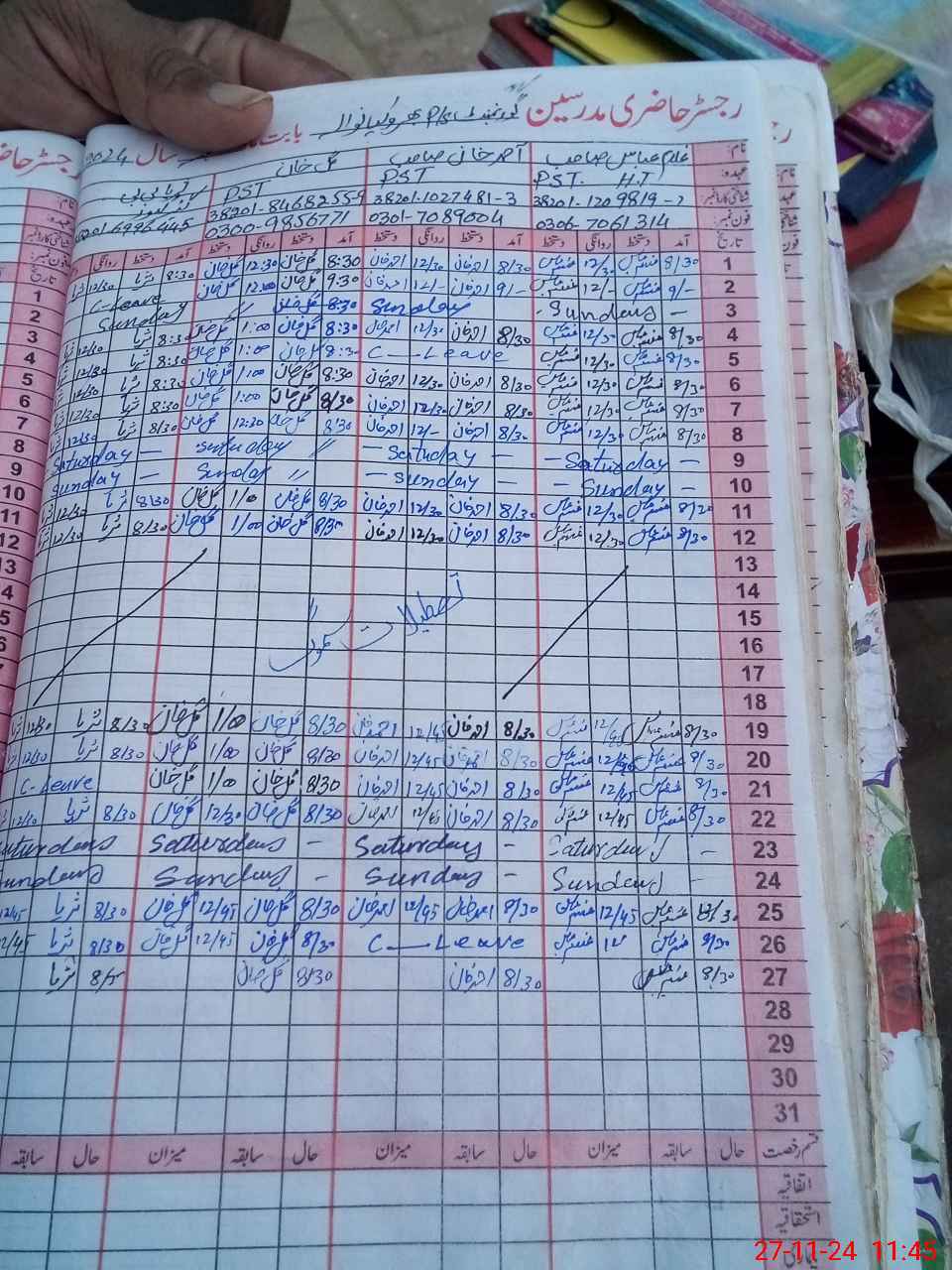| Name: GH**** AB**** Designation: (School Headmaster's/Headmistress's) PST/PTC/JV Phone/Cell Number: 03**** |