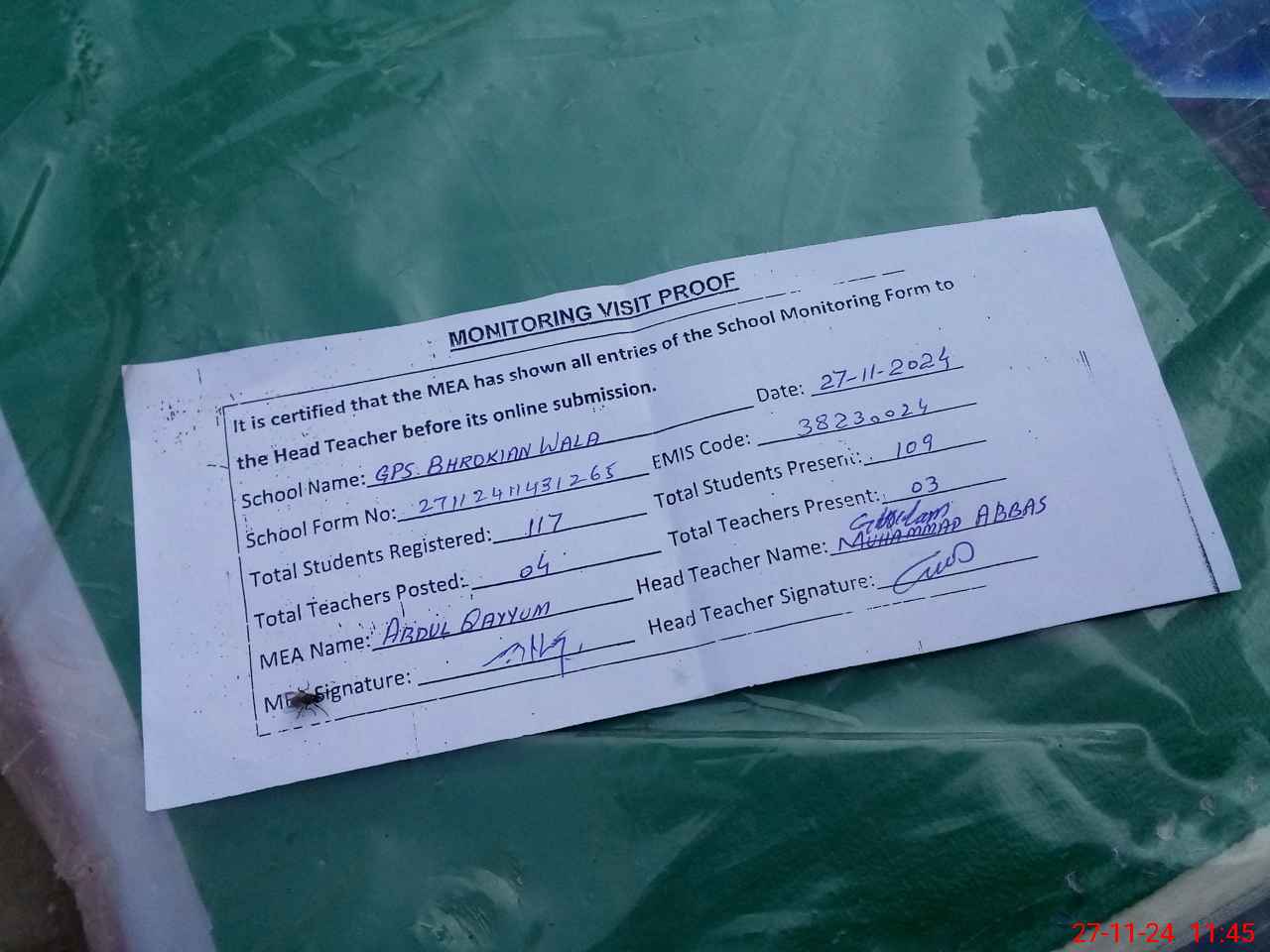 | EMIS Code: 38230024 | Name of School: GPS BHROKIAN WALA | |||