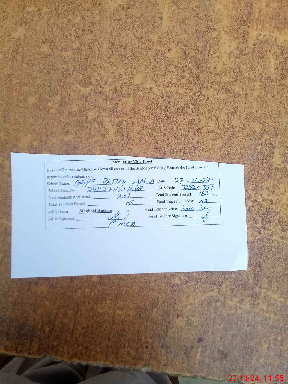 | EMIS Code: 32320337 | Name of School: GGPS PATTAY WALA | |||
