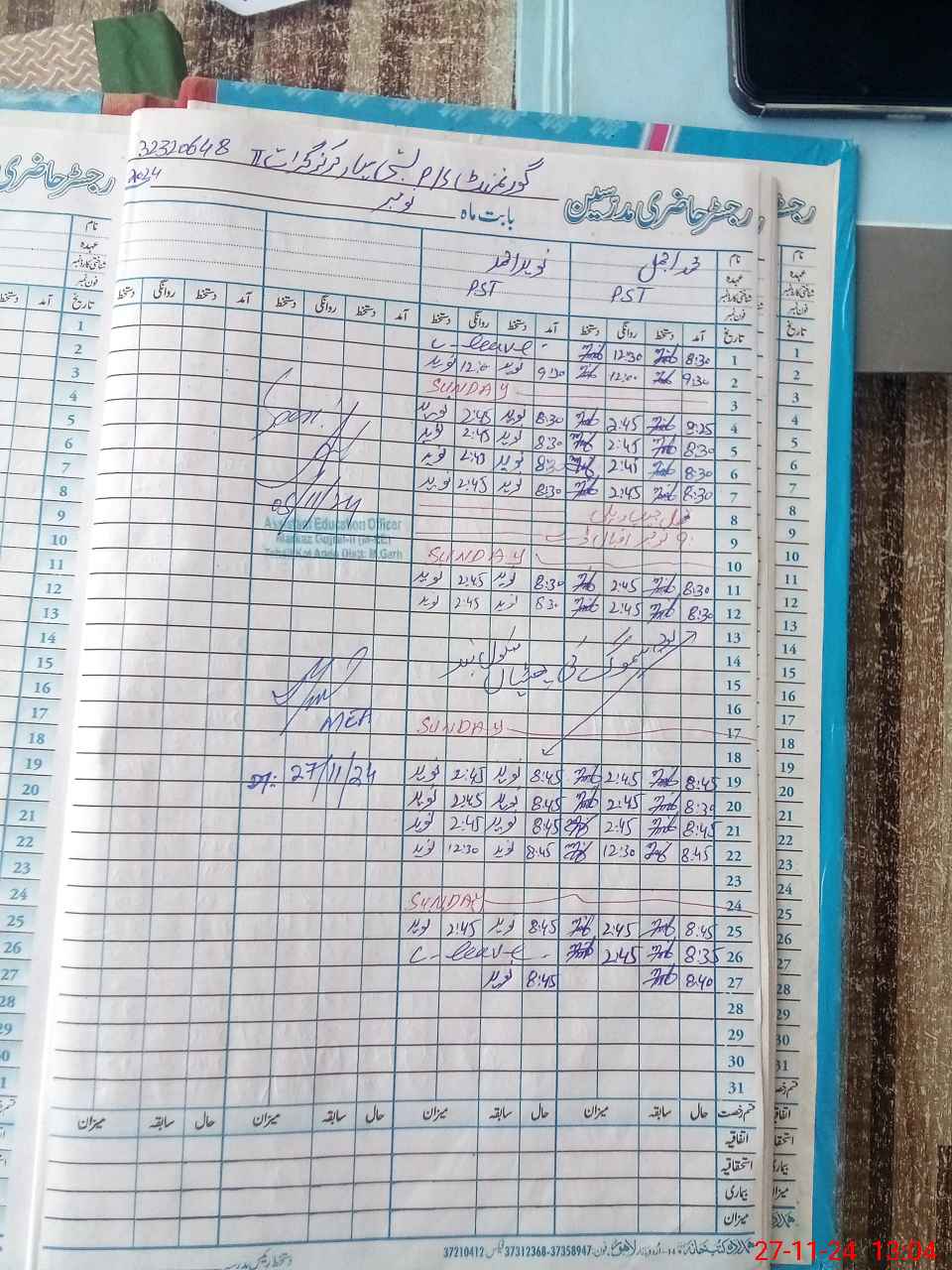 | CNIC | Full Name | Designation | R/C | Absence During Last Calender Month |
