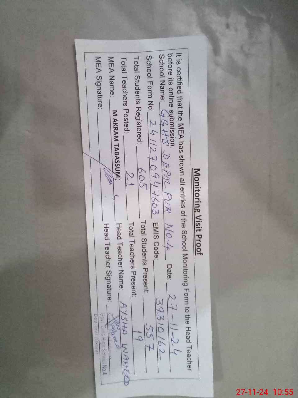 | EMIS Code: 39310162 | Name of School: GGHS DEPALPUR NO 4 | |||