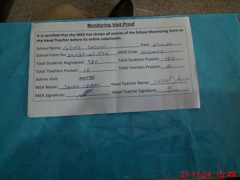 | Name: NU**** AM**** Designation: (School Headmaster's/Headmistress's) SST INC HEAD Phone/Cell Number: 03**** |